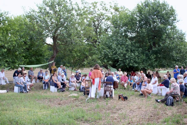 „Seide“ ist eine szenische Lesung aus dem gleichnamigen Buch von Alessandro Baricco unter dem Maulbeerbaum von Lübars, im Dorf und auf den angrenzenden Feldern. Die Reisen Hervé Joncours vermischen sich dabei mit den Eindrücken der sommerlichen Weite der Landschaft.